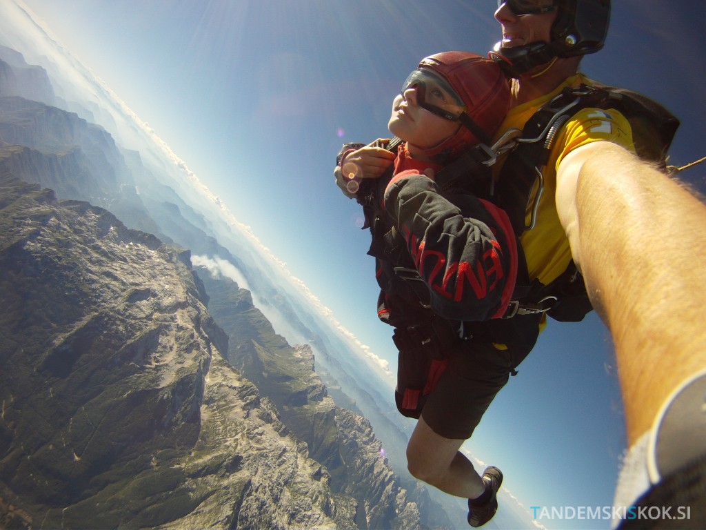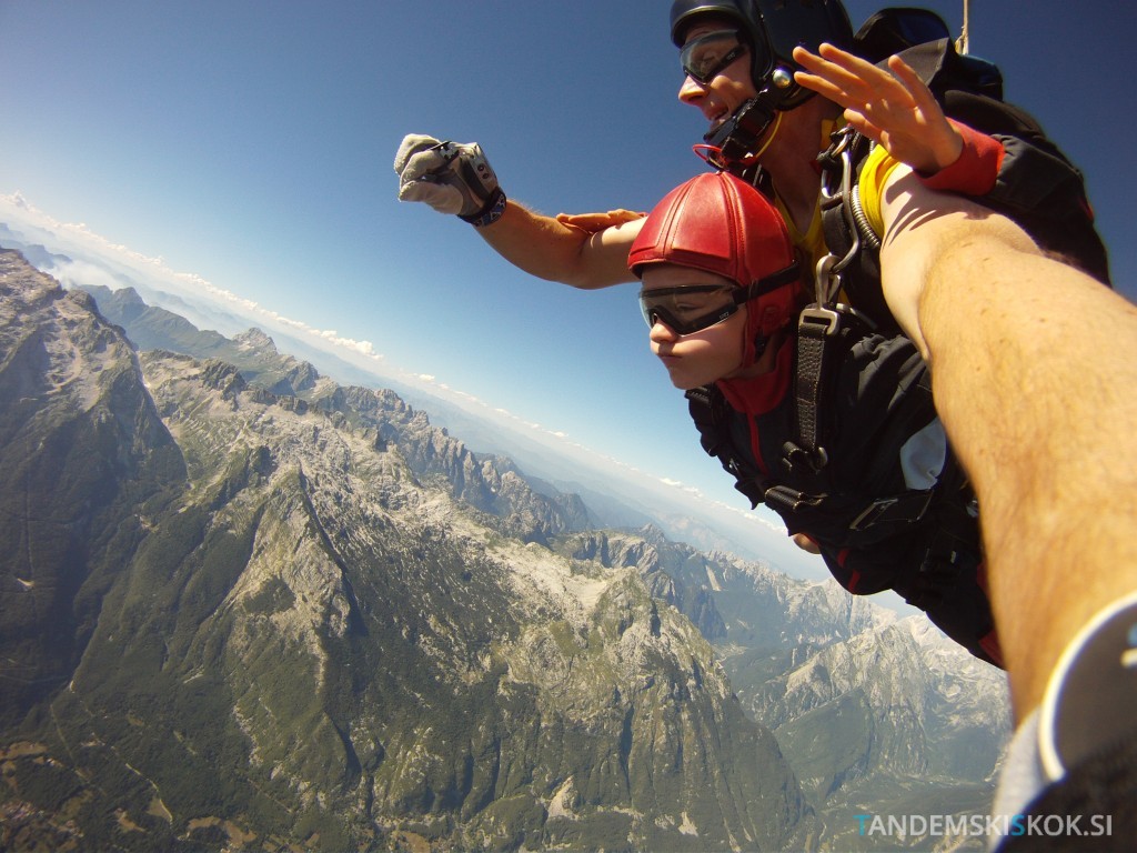 Tandemski padalski skok iz letala. Letališča Lesce, Slovenj Gradec, Portorož.