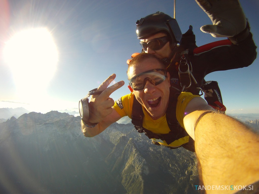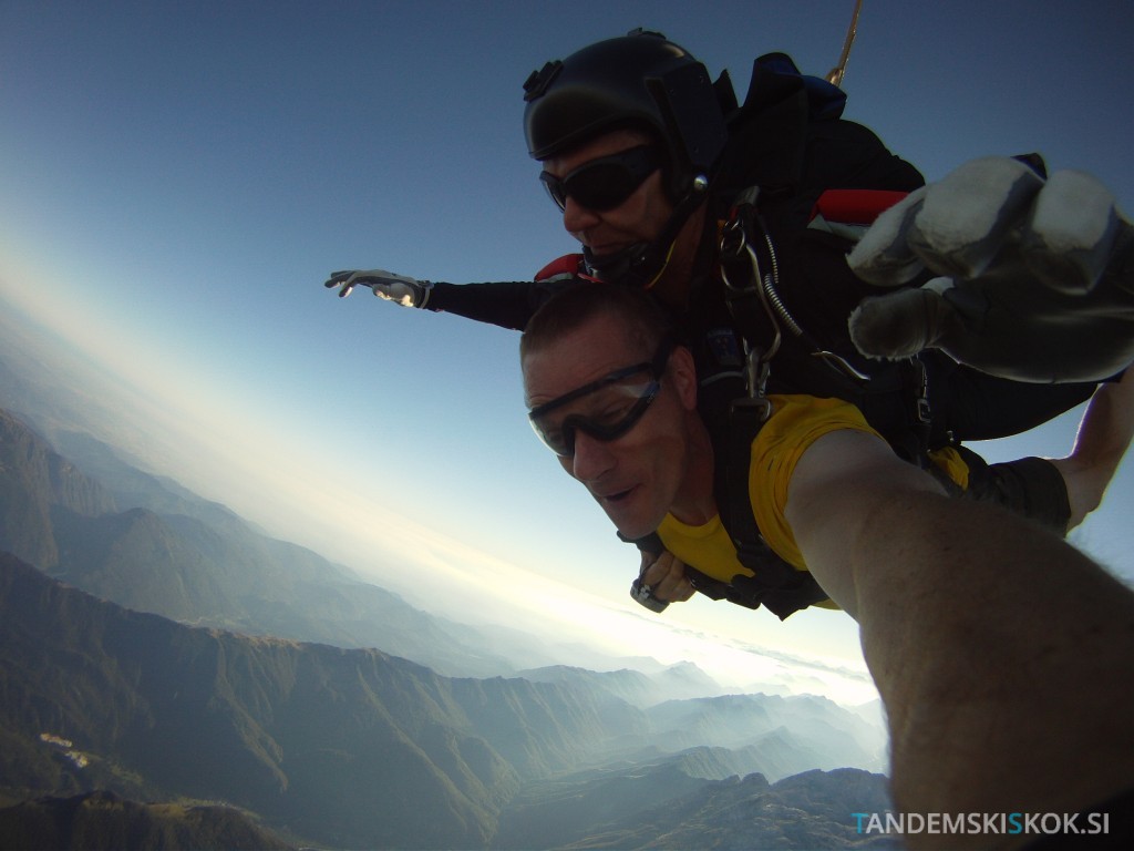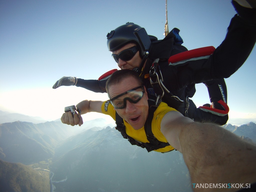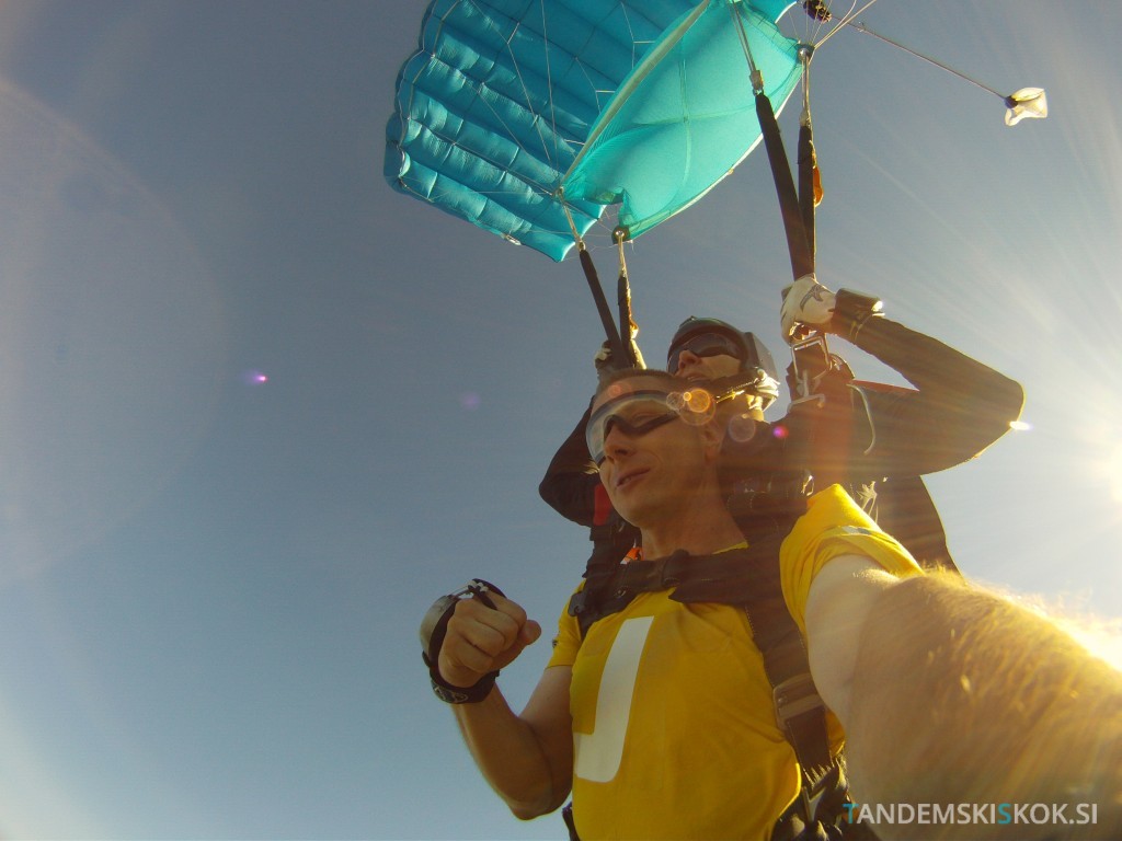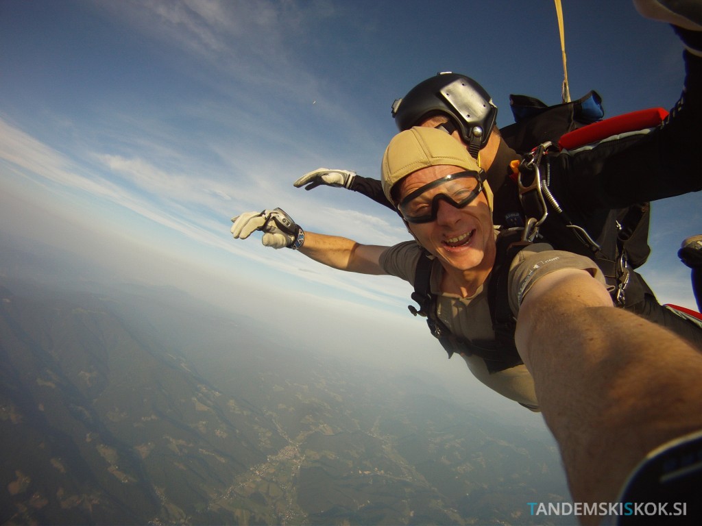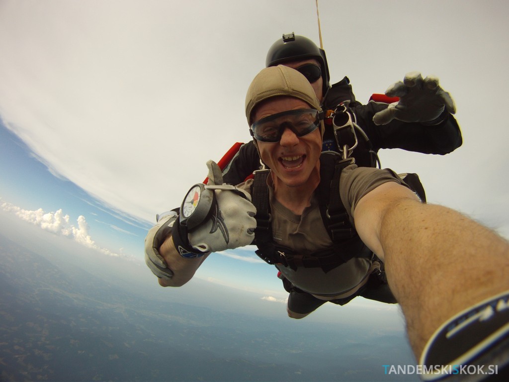 Vodja tandemskih inštruktorjev pri tandemskiskok.si Aljaž, se je med šolanjem novih tandem pilotov preizkusil tudi kot potnik.